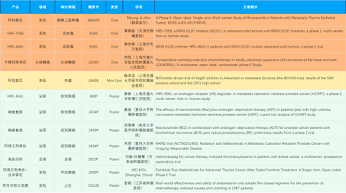 在胸腺上皮肿瘤、头颈鳞癌、肉瘤、前列腺癌、甲状腺癌等其他多个疾病领域,卡瑞利珠单抗、阿帕替尼、瑞维鲁胺、阿得贝利单抗、法米替尼、HRS-7058、HRS-4642、HRS-5041等抗肿瘤创新药相关研究一共入选了4项口头报告、1项简短口头报告、5项壁报,彰显了BJL平台医药强大的研发实力。此外,海曲泊帕和昂丹司琼口溶膜分别在防治化疗导致的血小板减少和恶心呕吐方面各有1项研究入选壁报。