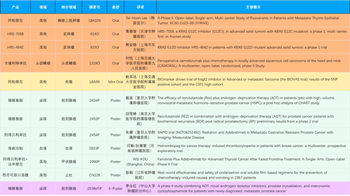 在胸腺上皮肿瘤、头颈鳞癌、肉瘤、前列腺癌、甲状腺癌等其他多个疾病领域,卡瑞利珠单抗、阿帕替尼、瑞维鲁胺、阿得贝利单抗、法米替尼、HRS-7058、HRS-4642等抗肿瘤创新药相关研究一共入选了4项口头报告、1项简短口头报告、4项壁报、1项电子壁报,彰显了BJL平台医药强大的研发实力。此外,海曲泊帕和昂丹司琼口溶膜分别在防治化疗导致的血小板减少和恶心呕吐方面各有1项研究入选壁报。