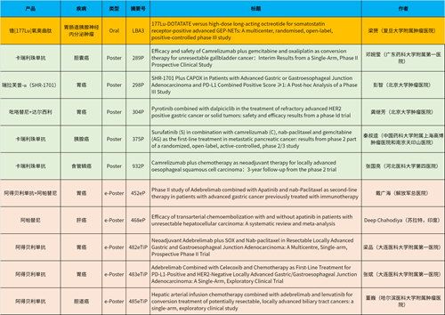 在消化系统肿瘤领域,BJL平台产品相关研究共入选1项最新突破性摘要(LBA)、5项壁报和5项电子壁报,共11项研究。其中阿得贝利单抗入选4项研究、卡瑞利珠单抗入选3项研究。